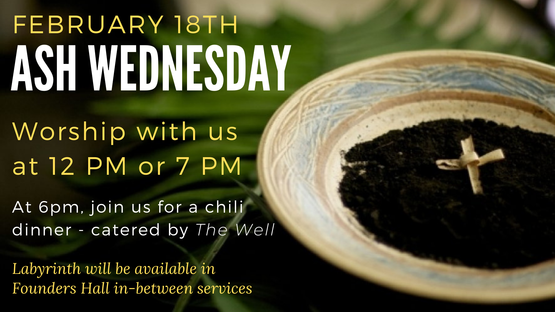 Beginning with Ash Wednesday, the season of Lent beckons those of us who follow Christ to a time of introspection and renewal, an opportunity to set aside the burdens that would weigh us down and to make new commitments in faith. Please join us on Ash Wednesday, February 18th, at either Noon or 7:00 p.m. as together we begin our Lenten journey with words of faith and the imposition of ashes.